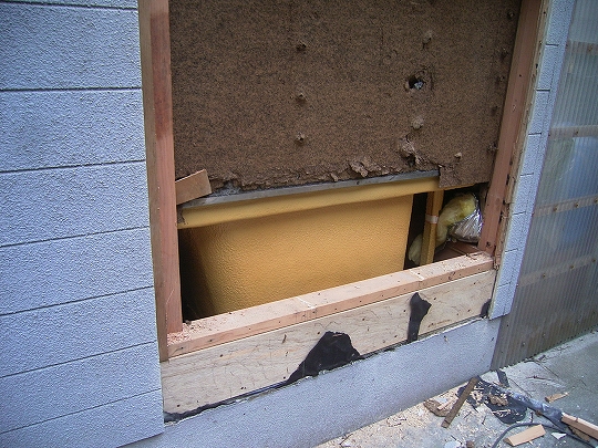 浜田市港町 T様邸 昔新築時に取り付けたハーフユニットの浴室を現在の一体型のシステムバスに取り替える工事です。