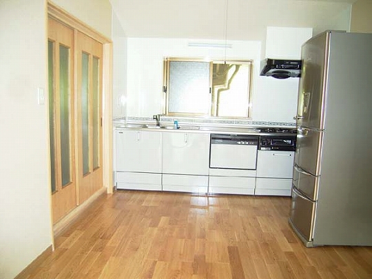 大田市大森町 K邸 床材は、ナラ無垢フローリング。キッチンはタカラエーデルです。