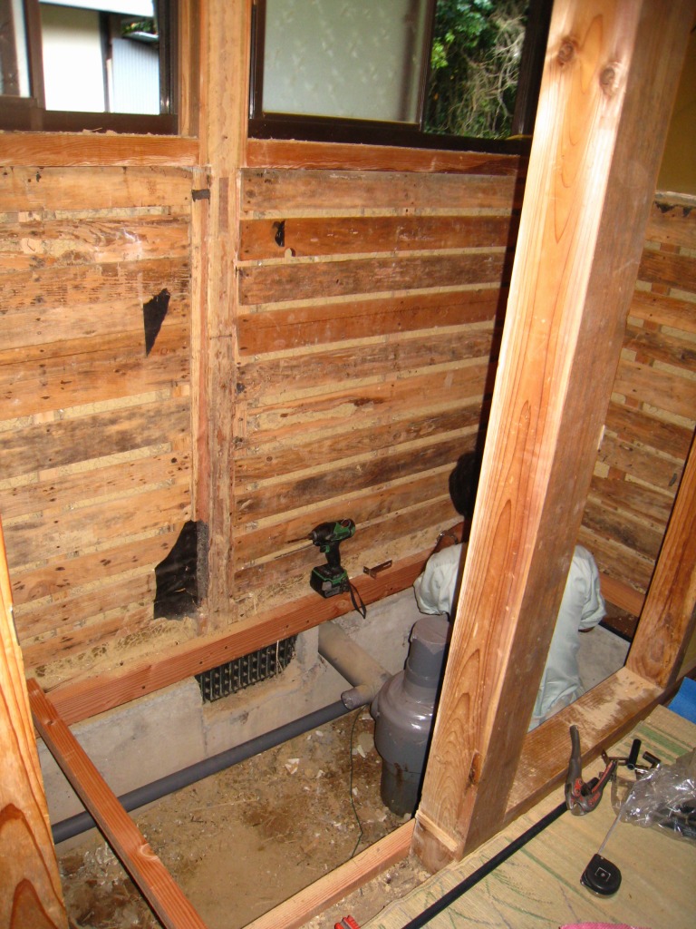 | 非水洗和式便器の大便所と小便所の壁を解体して簡易水洗トイレにして手摺の設置をご提案させていただきました。 | ||||||||