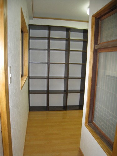 | 読書の趣味のご主人のための和室から洋室(書斎)への部屋改装工事でした。以前、和室から洋室に改装させたいただいたご主人の部屋と隣の和室の押し入れを壊してつなぐ事にしました。多くの書籍の収納するために壁に棚も造りつけました。 | ||||||||||||||