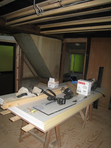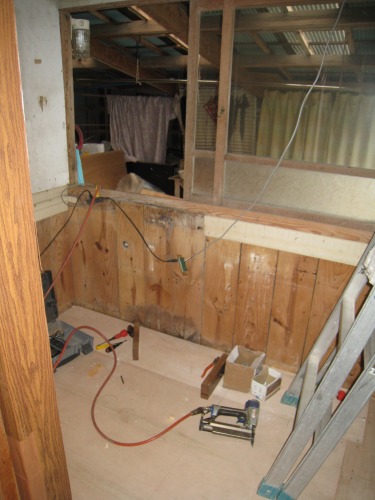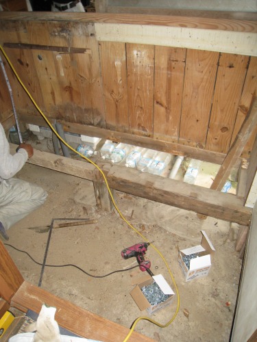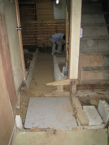 調湿のために炭八を敷設中