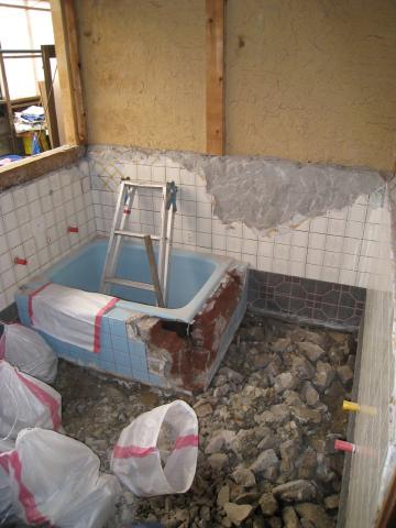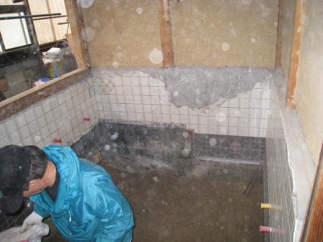 タイルを剥がし解体しています。