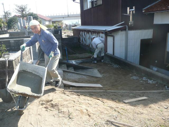 ねこでコンクリを運び、流していきます。