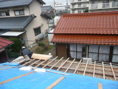 1月15日からやる予定だったI様邸の屋根瓦取替工事。天候不順のため2月15日、一ヶ月送れて着工です。