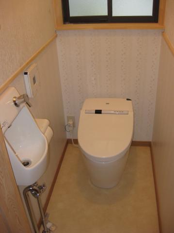 トイレはクロスを貼って、便器を取り付けたら完成です。 |