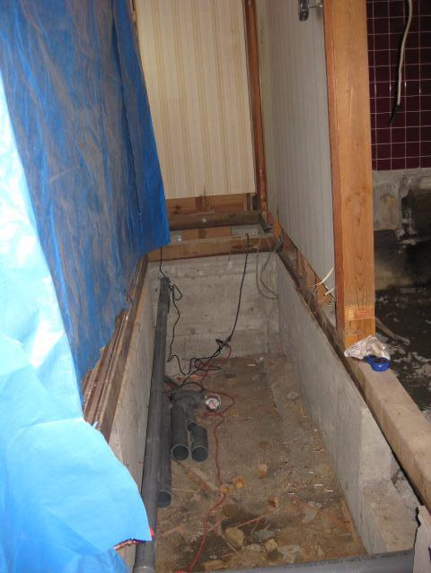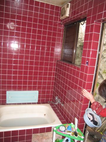 浴槽を取りはずし、タイルも剥がします。 |