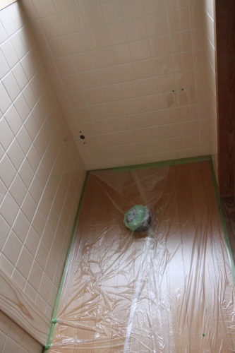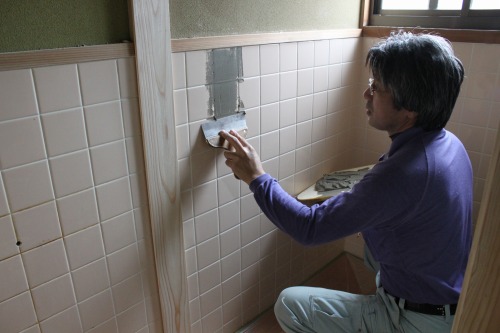 汲取り式の便所を一つにし、簡易水洗の洋式便器を取付ました。床は、耐水フローリング、タイルの上には、タイル調のビニールシートを貼りました。