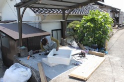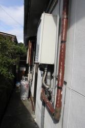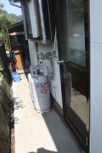 40年以上使われているお風呂で、一度直焚き風呂を落とし込みにするためホーローの風呂に取り替えられ様子がうかがえました。