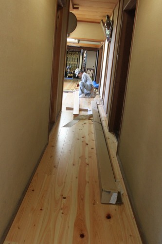 10月7日(金)玄関・ホール床張り工事中。