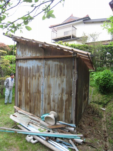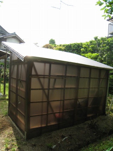大風のため倉庫の波板が破れたので修理してほしいとの依頼でした。対衝性、耐光性、光透過性に優れたポリカ波板を使用して貼り替えました。