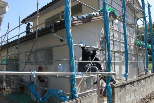 下塗り施工中