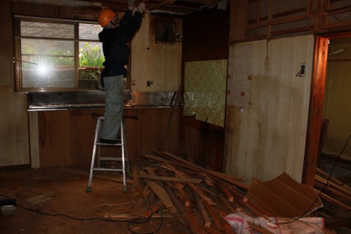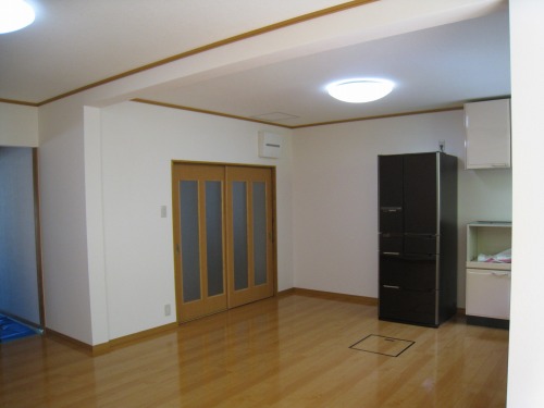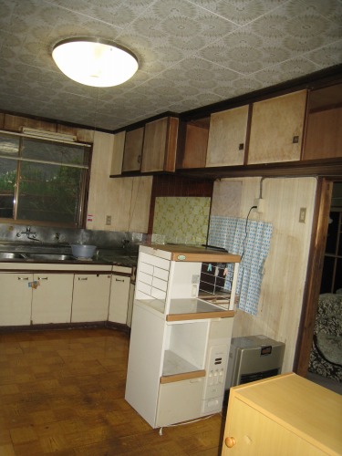 台所の床が傷んでいるのでフロアー貼り替え工事とキッチンの取替えの相談でした。隣の部屋の壁を解体してすることでリビングキッチンとして広く明るい部屋になる事をご提案させていただきました。