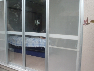 取替前の縁側サッシ。アルミのフレームッが大分傷んできました