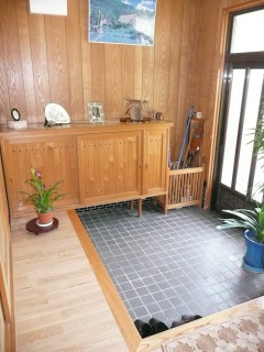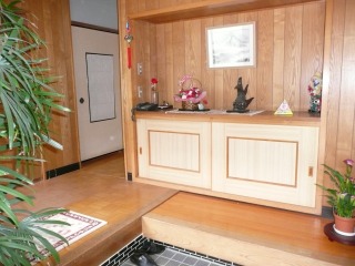 | 新しくなったキッチン。タカラの”エーデル”です。 | 段差を解消した玄関 | ||||||