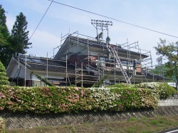 | 既存の瓦を剥がしたいるところです。 | 既存のベニヤの外壁を剥がし新しいサイディングを張っているところです。 | ||||