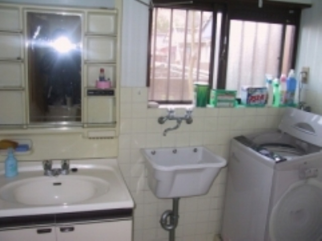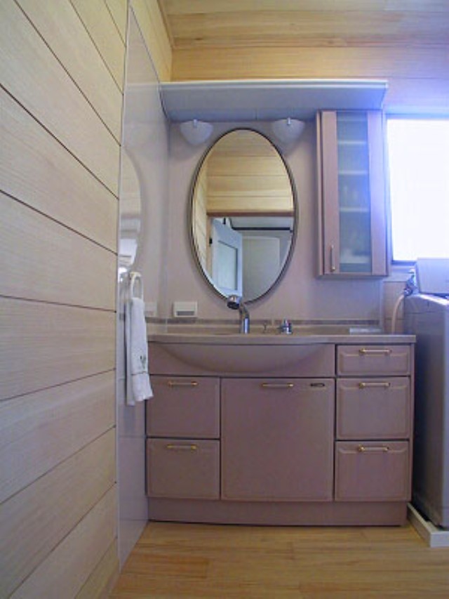 洗面はタカラのシステム洗面を使用。壁・床材は桐材を使用する。