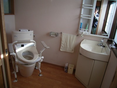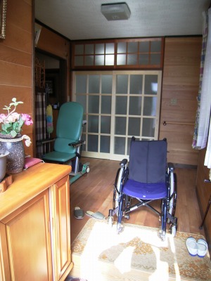 施工概要 江津市渡津町 K様邸 車椅子生活の奥様のために玄関・ホール・居間・トイレを改装しました。ポイント車椅子が十分ととうれる快適な区間を確保する事。 |