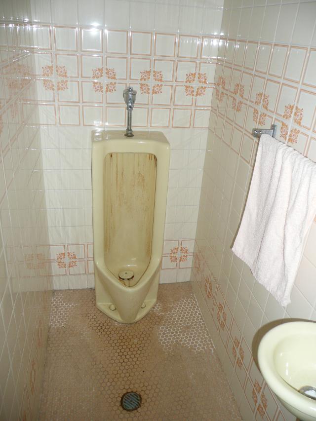 | ↑男性、女性便器共に新しいものに入れ替えます。タイルも剥がしていきます。 | ||||||||