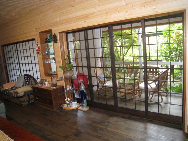 洋室と和室を一つの部屋にし、薪ストーブを置きます。