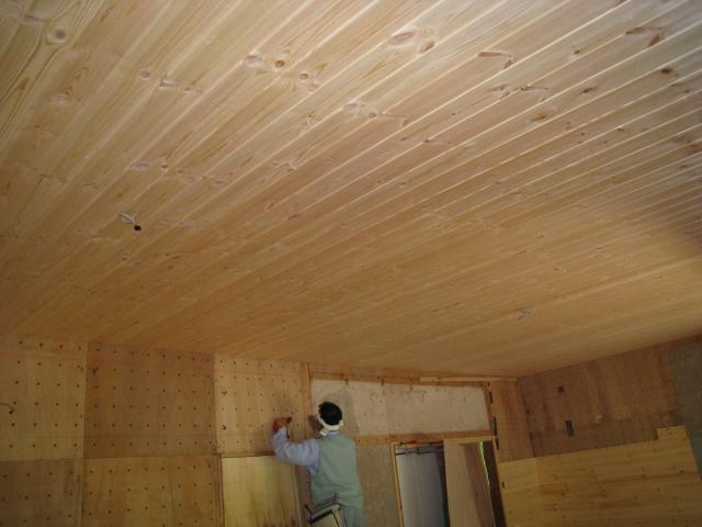 天井・壁材は<オーパスのパイン壁羽目板12ミリ>
