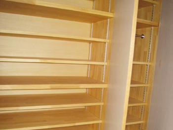 | 完成しました!玄関まわりは、タイル張りにして、急だった段差を一段増やし上がりやすくしました。 | 下駄箱はこだわりのものです。収納力抜群です! |
