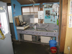 | 施工前のキッチンの様子です。 | 昔ながらのキッチンを使用されていました。 |