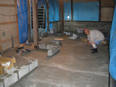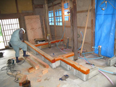 | 大工が基礎、土台作りをしているところです。 | 基礎工事がだんだんと進んでいきます。 | 施工部位ごとに工事を進めていきます。 |