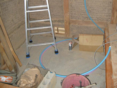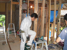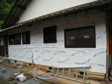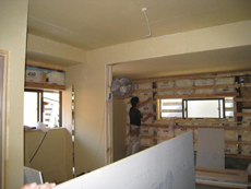 | 浴室とトイレはペアガラスです。 | 壁には断熱材を入れています。 | クロスを貼れる状態まで仕上がってきました。 |