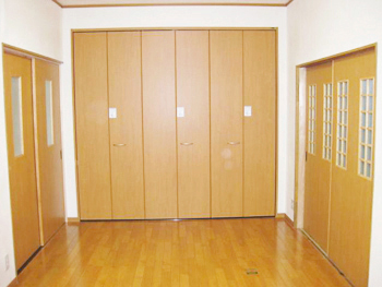 | 隣の和室と仕切っている、建具と、こだわりのカウンターキッチンです。安心の対面式です。 | フルオープンクローゼット!大変使いやすいクローゼットです。 |
