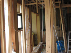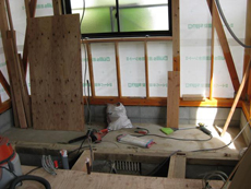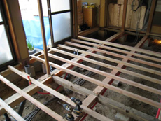 | 床材を剥がして、フローリングを貼っていきます。 | キッチンを広くするため、増築した部分です。 | 縁側だった、この部分にトイレを設置します。 |