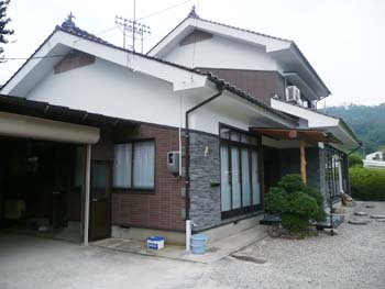 | 筑後30年の建物です。瓦がかなり傷んでおり、時々雨漏りがするので今回屋根の取り替えをする事になりました。 | 外壁も現在ベニヤの外装材の傷みがひどくところどころめくりあがっており、妻の漆喰壁もはげていたので、今回大幅にやりかえることになりました。 |