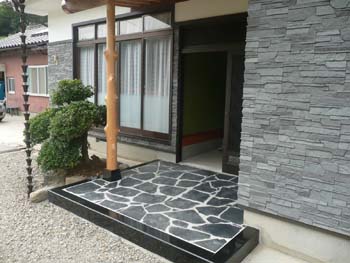| 玄関は高級タイルサイディングで仕上げました。 |