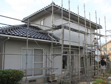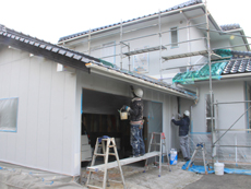 | 施工が完了しました。美しい外壁に仕上がりました。 | ガイナ塗料で夏涼しく冬暖かい、より住みやすいお家になりました。 |