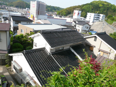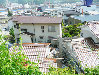 | 完成したY様邸の屋根全景の様子です。豪華で品のある屋根になりました。 | Y様邸から見える浜田市浅井町の様子です。 |