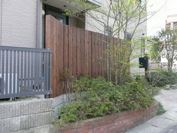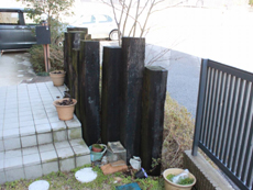 シロアリに食われた枕木を撤去して新しい物にしたいとの相談でした。フェンスはナチュラルな印象のウッドフェンスをご要望でした。 |