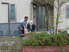 | 新しいフェンスに変わった事で、お出かけする時も気持ちよく行けます。 | 玄関前でお施主様のK様と記念撮影をしました。 |