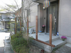 | 施工前の玄関の様子です。 | フェンスがシロアリによって劣化が進んでいるのが分かります。 |