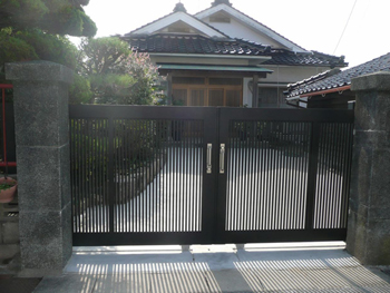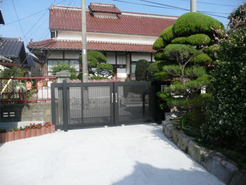 貫禄のあるお宅なので、門扉は重厚感溢れるブラック色を提案させていただきました。 |
